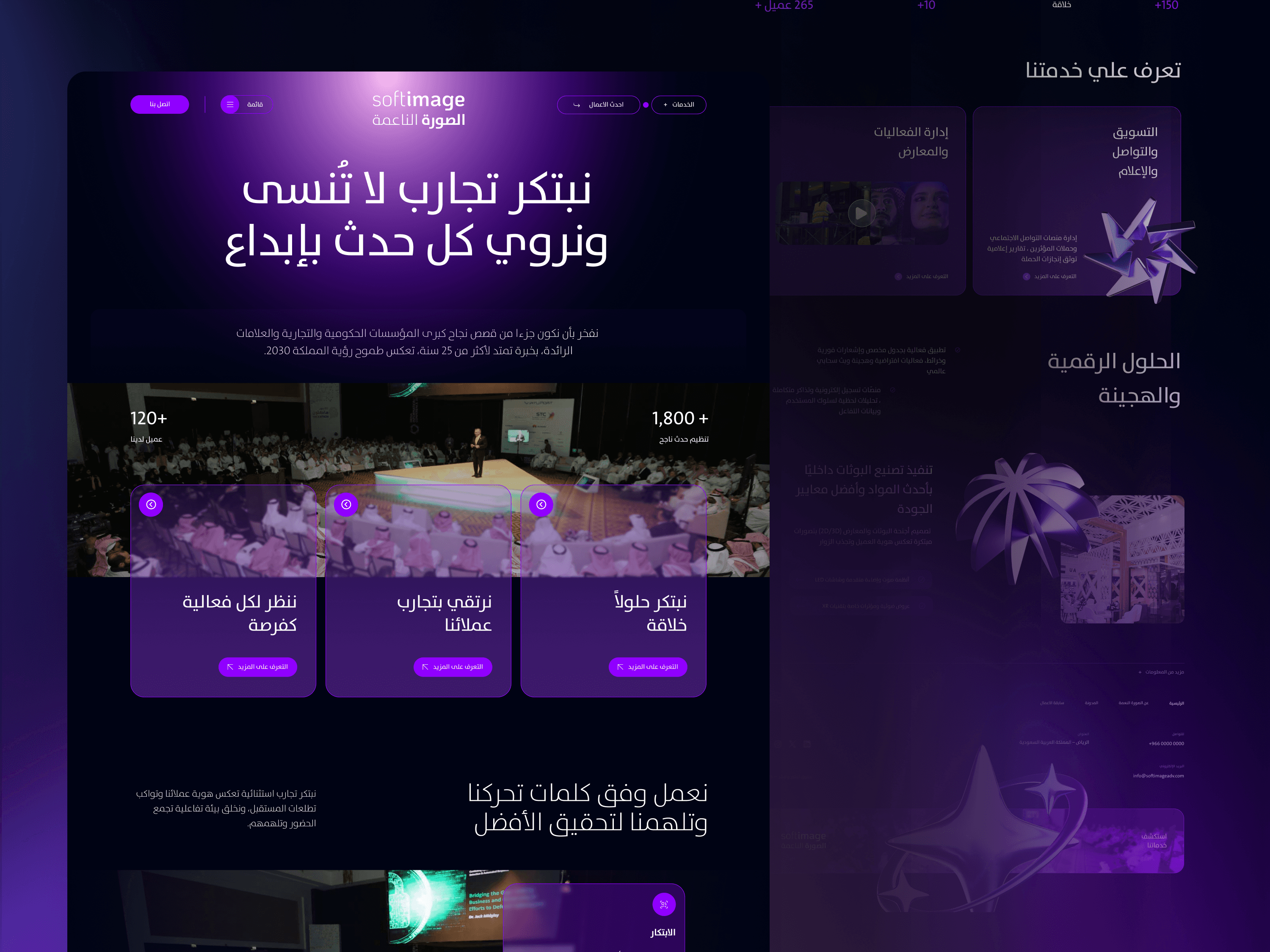 The website was designed to position SoftImage as a strategic partner for government entities, enterprises, and leading brands looking to create memorable events.